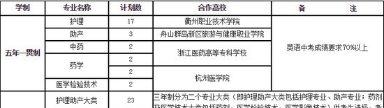 浙江医药高等专科学校招生计划: